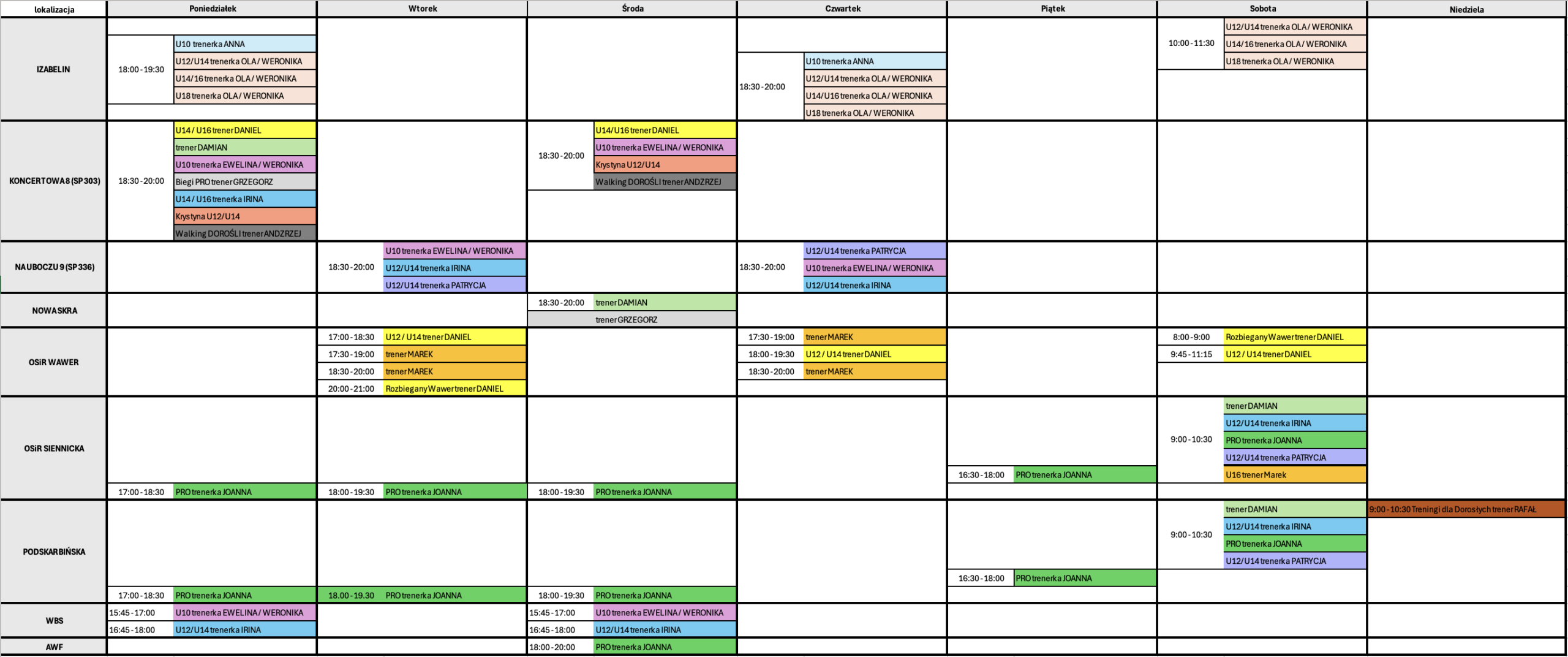 *Dokładna lokalizacjia i miejsce (hala i stadion) będą podawane 245h przed rozpoczęciem treningów poprzez czat grupy na WhatsAppie